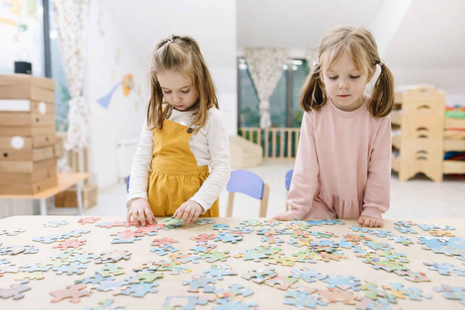 Puzzles and sorting activities help children recognize patterns and relationships.